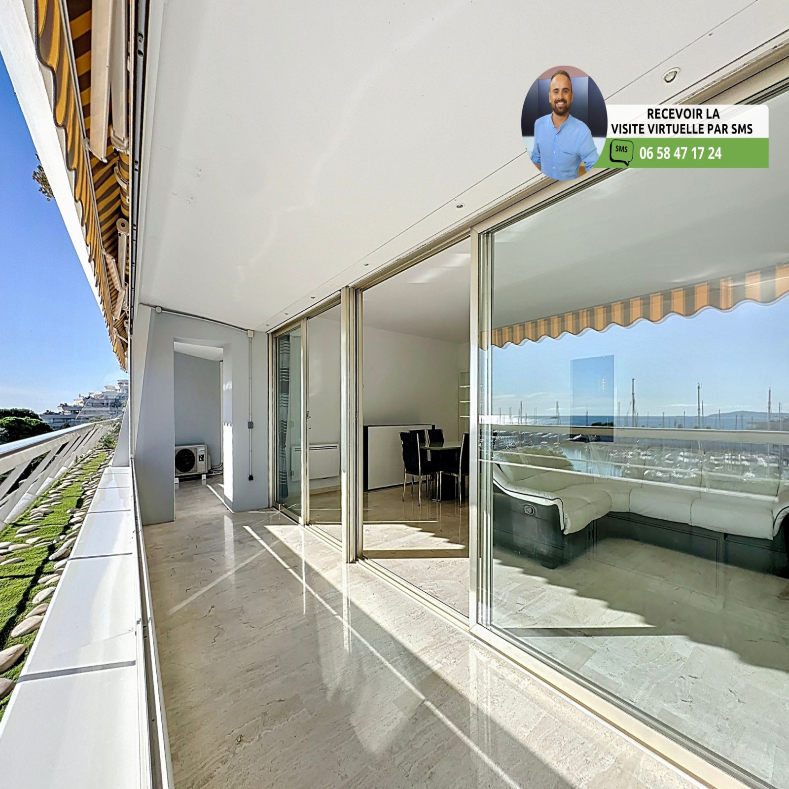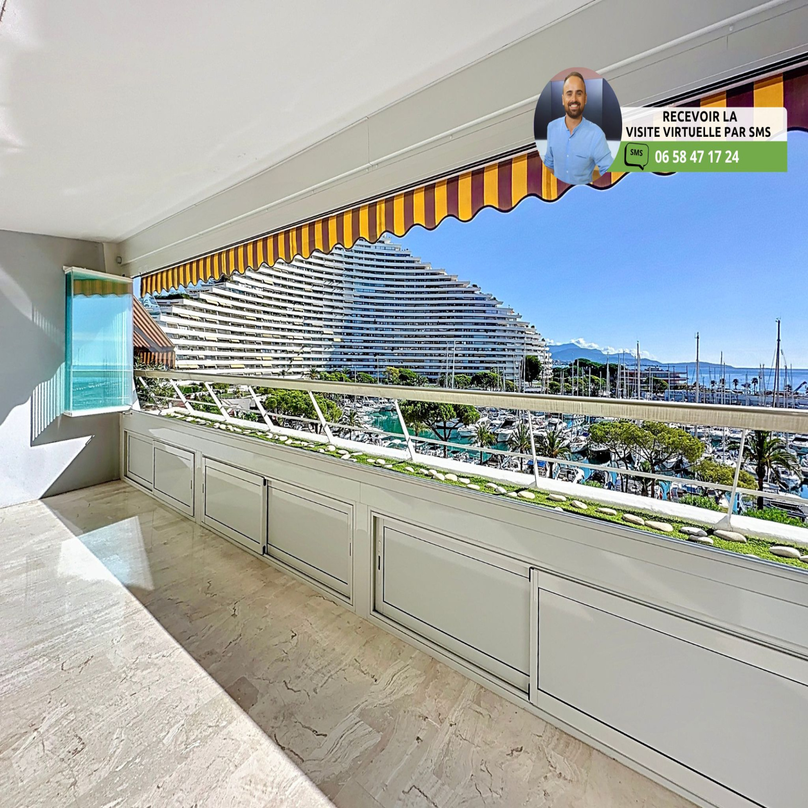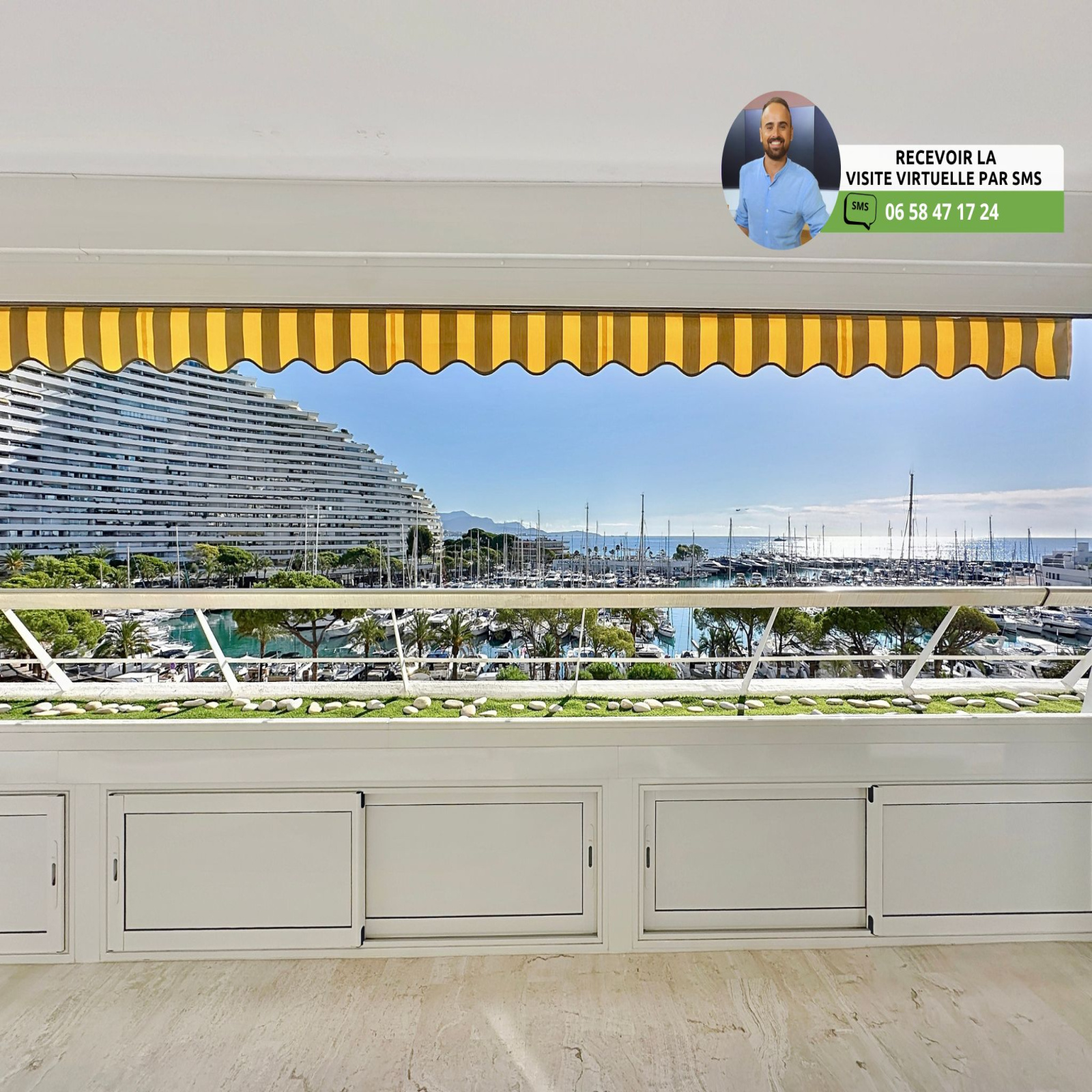 (Visite virtuelle 360° disponible sur demande par sms 7j/7) Sébastien Vidal de chez Phygital immo l'agence au forfait fixe vous présente ce vaste appartement 3/4 pièces de 91.08m² loi Carrez traversant (anciennement il s'agit d'un 4P), exposé Est et Ouest, avec une belle terrasse de 23.82m². Superbe vue sur la mer et le port de Marina Baie des Anges. Situé au 2ème étage d'une résidence sécurisée avec agent de sécurité / réception et très beau parc aménagé, il se trouve au cœur des Marinas, à proximité directe des plages, des commerces / restaurants et des transports en commun à pied. Accès A8 à 4 minutes.