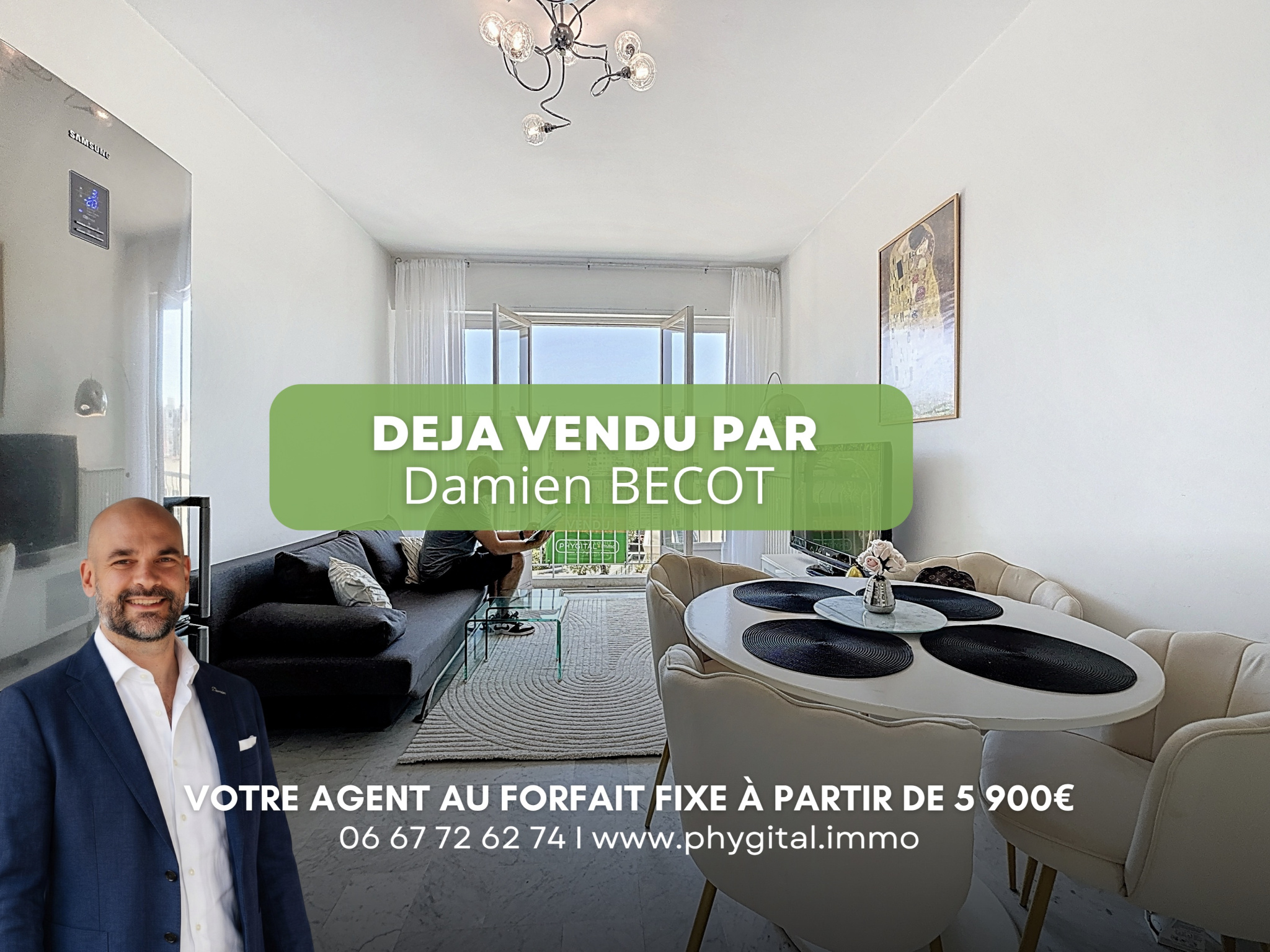 (Visite virtuelle 360° disponible sur demande par sms 7j/7) Damien BECOT de chez Phygital immo l'agence au forfait fixe vous présente en Exclusivité ce très bel appartement 3 pièces de 50,87m² loi Carrez équipé avec les meubles, exposé Sud-Est. Situé au 1er étage sur 4 d’une résidence sécurisée, il se trouve dans le quartier de Caucade à Nice-Ouest, à moins de 6 minutes à pied des plages et de la Promenade des Anglais, des commerces et proche de l'aéroport.
