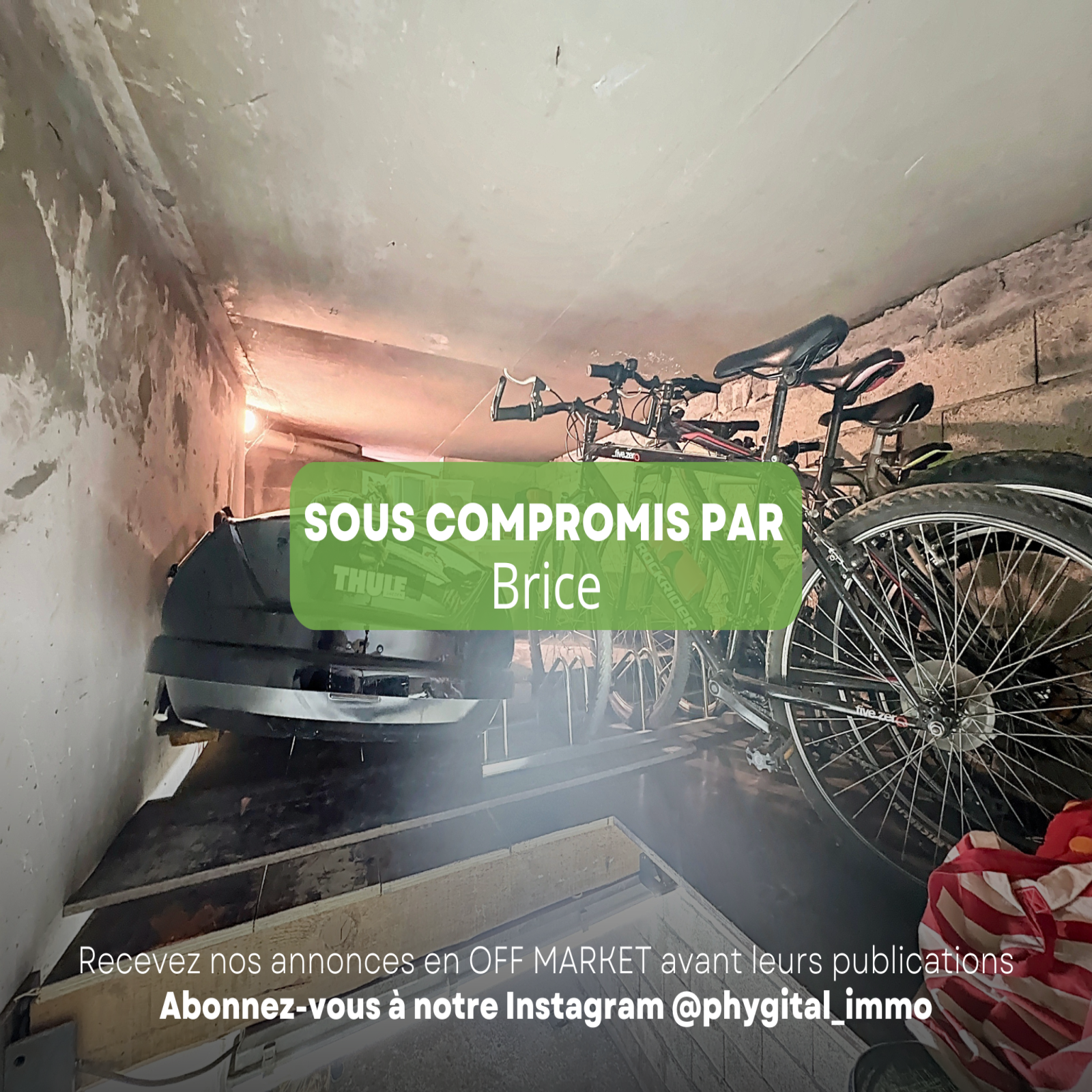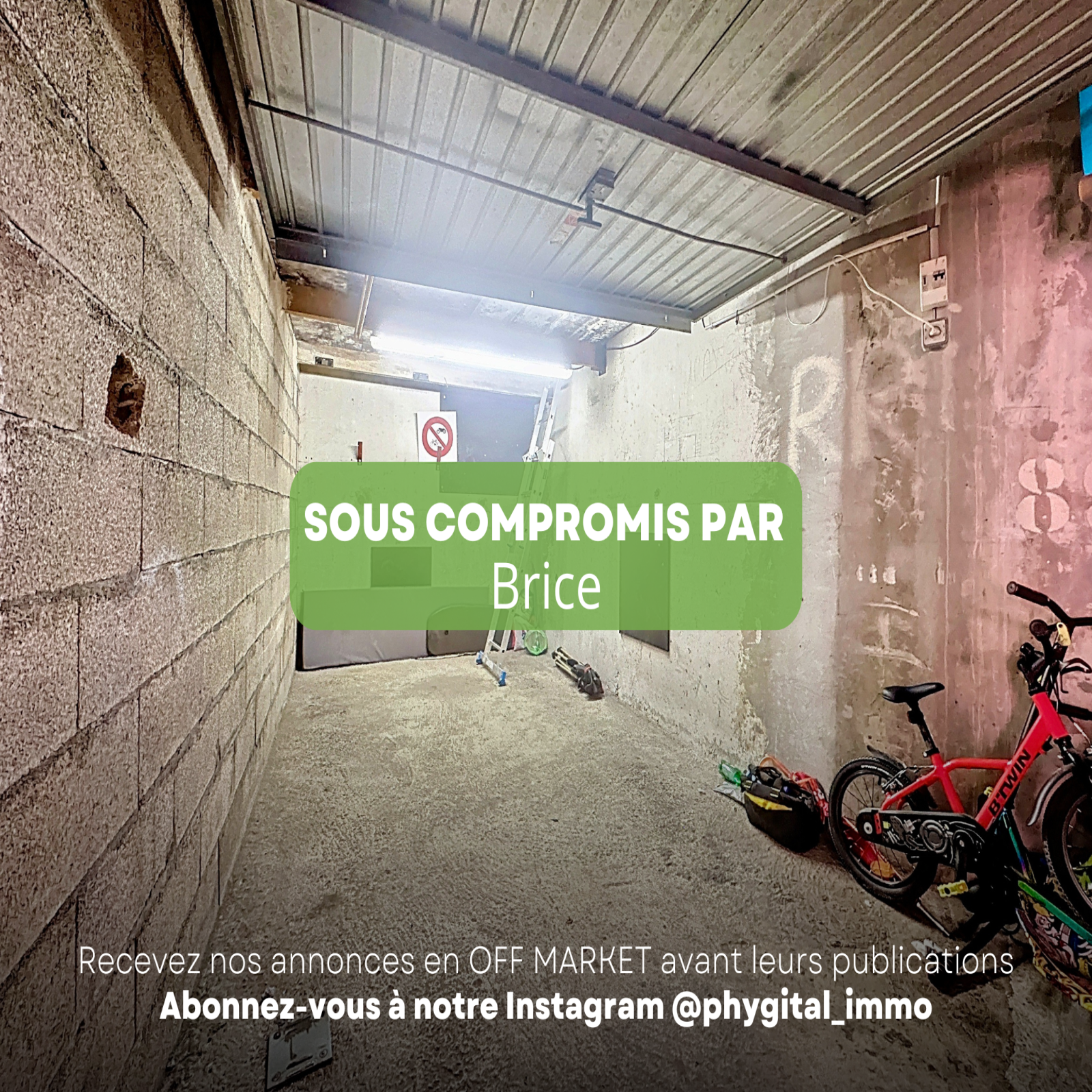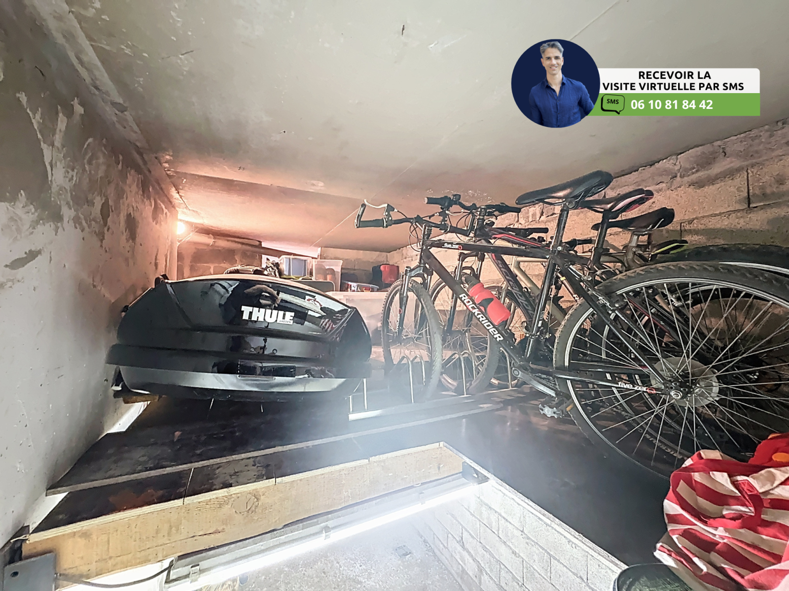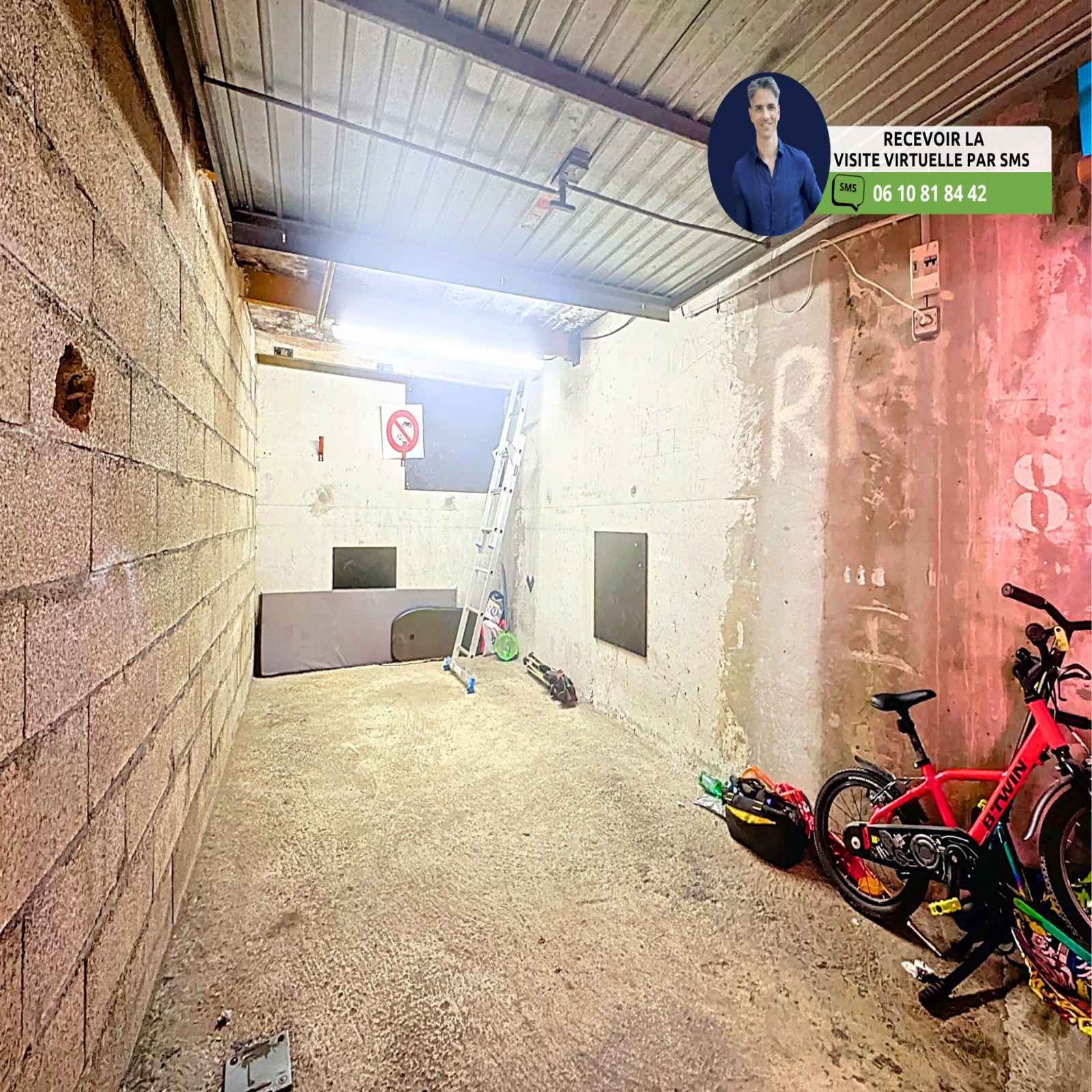 - Garage 1 de 12,15m² en option : Privatif en sous-sol avec mezzanine 1,50m de hauteur environ, électricité fermé
