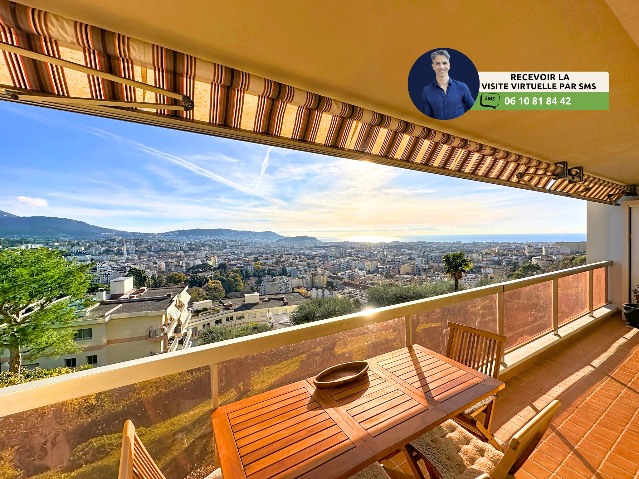 (Visite virtuelle 360° disponible sur demande par sms 7j/7) Brice Sieffert de Phygital immo l'agence au forfait fixe vous présente en Exclusivité ce très bel appartement 2 pièces de 49,10m² loi Carrez, avec une terrasse de 15.41m² exposée Est. Superbe dégagée sur la vue mer et les montagnes. Situé au 2ème étage sur 5 d'une résidence sécurisée avec piscine et gardien, il se trouve dans le quartier recherché de Nice Collines, secteur Pessicart, proche des commerces et des transports en commun. A 5 minutes en voiture et à 12 minutes à pied de Nice Libération
