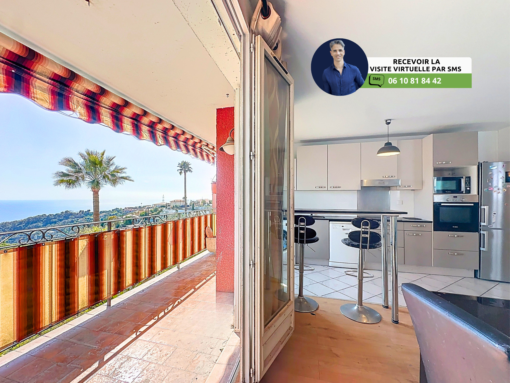 (Visite virtuelle 360° disponible sur demande par sms 7j/7) Brice Sieffert de Phygital immo l'agence au forfait fixe vous présente en Exclusivité cet agréable appartement traversant et d'angle 4 pièces de 73.32m² loi Carrez offrant une vue mer, avec une terrasse de 8.22m². Triple exposition. Situé au 1er étage sur 2 dans une copropriété au calme absolu, il se trouve dans le quartier résidentiel de Saint-Pierre de Féric, sur Nice Collines, à proximité des écoles (3 min en voiture).