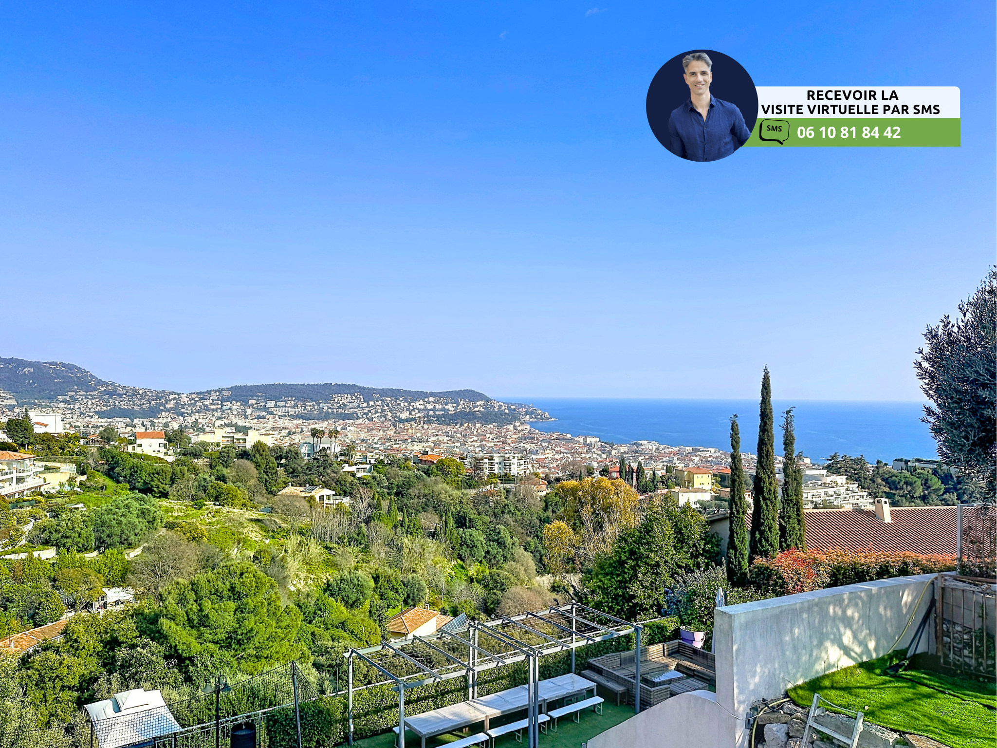 (Visite virtuelle 360° disponible sur demande par sms 7j/7) Brice Sieffert de Phygital immo l'agence au forfait fixe vous présente en Exclusivité ce bel appartement traversant de 3 pièces de 61.23m² loi Carrez offrant une vue mer, avec balcon exposé Sud-Est. Situé en dernier étage (2/2) sans ascenseur d'une belle copropriété arborée, il se trouve au calme absolu sur Nice Collines, à proximité des écoles (3 minutes en voiture).