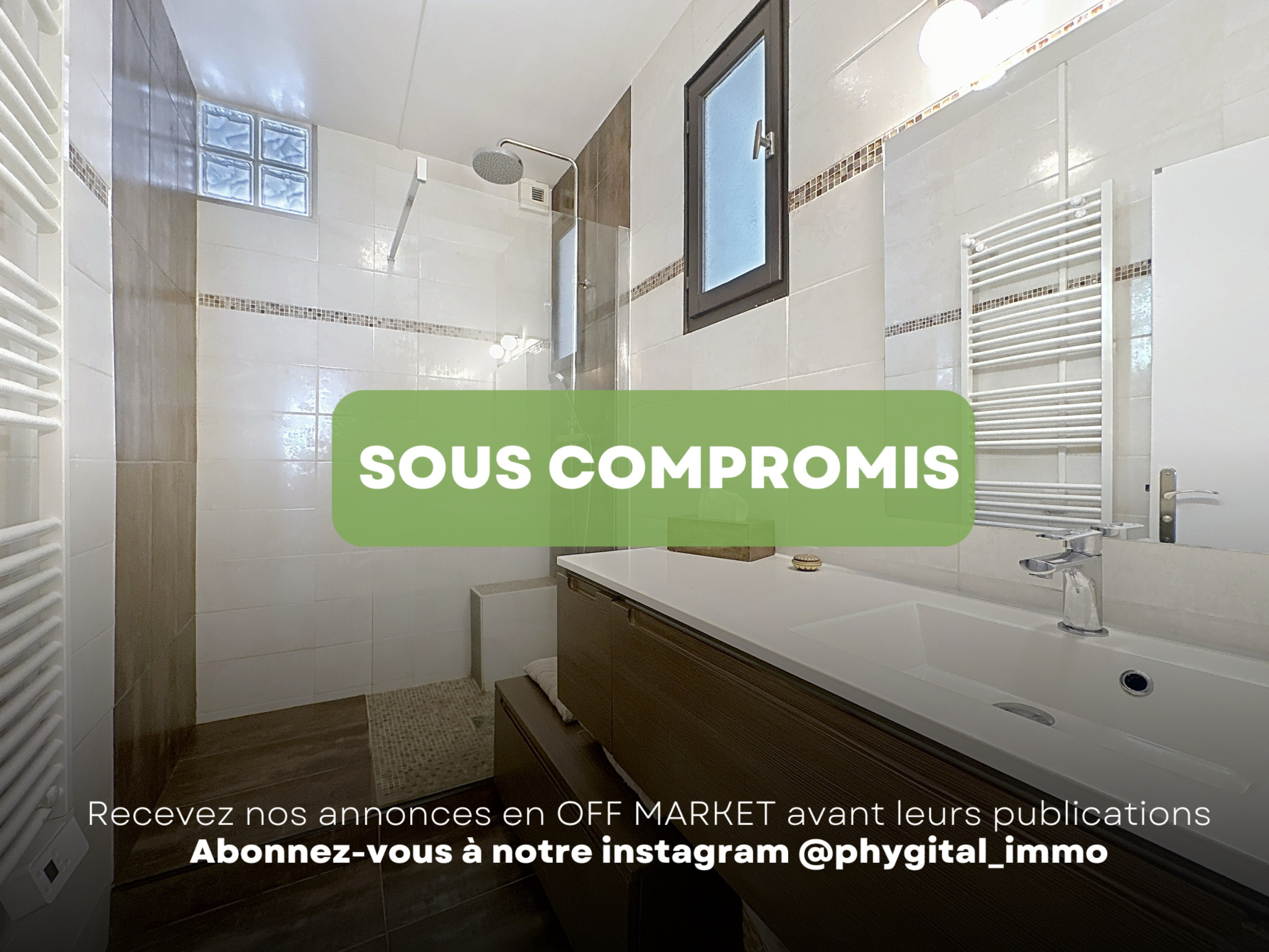 - Salle d’eau avec douche à l’italienne et sèche-serviette