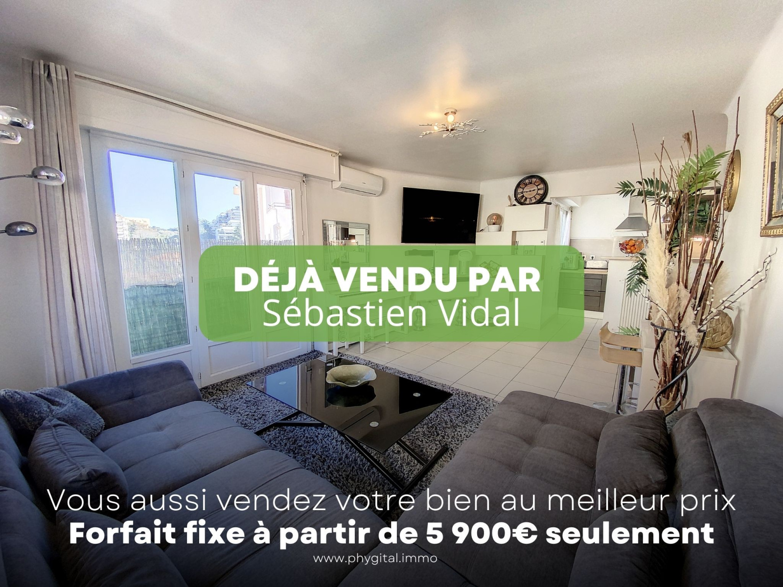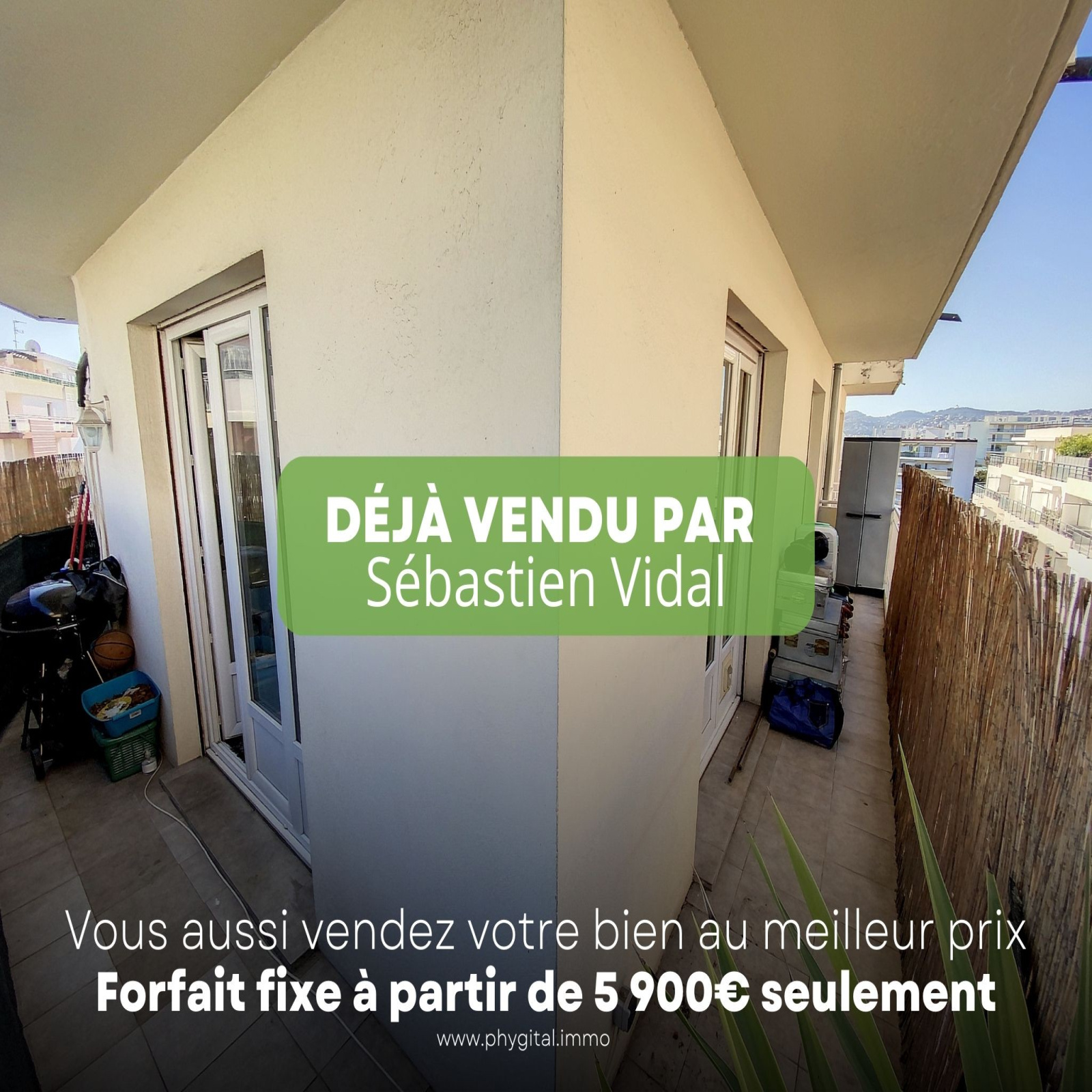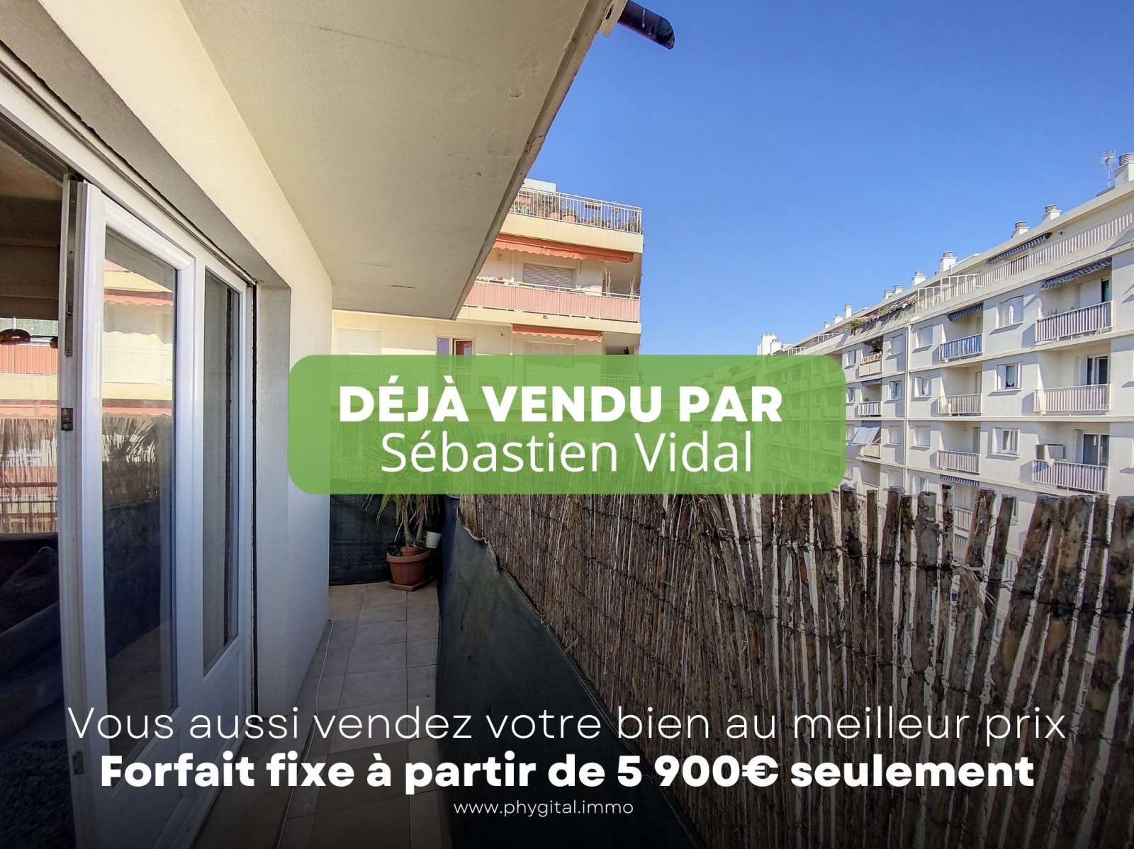 Phygital immo l'agence au forfait fixe vous présente en Exclusivité (Visite virtuelle 360° disponible sur demande) cet agréable 3 pièces de 74.23m² loi Carrez avec un balcon d?angle de 13.07m² exposé Est + un autre balcon devant la chambre. Situé au 5ème étage sur 7 d'une résidence de 1975, il se trouve proche du centre-ville d'Antibes & Juan-les-Pins, des plages, des écoles, des commerces et des transports en commun. Cet appartement de 74.23m² loi Carrez se compose de : - Hall d'entrée : 8,57m² - Séjour : 25,47m² - Cuisine : 7,8m² - Chambre 1 : 14,28m² - Chambre 2 : 10,95m² - Salle de douche : 4,47m² - WC indépendant : 1,29m² - Balcon 1 : 13,07m² - Balcon 2 : 3,14m² - Pas de parking et pas de cave Les plus de l'appartement : - Etage élevé - Balcon d'angle de 13,07m² - Cuisine ouverte et semi-équipée avec plaque de cuisson, hotte et lave-vaisselle - Climatisation réversible dans le séjour - Deux placards de rangement dans le hall d?entrée - Double vitrage dans tout l?appartement - Proximité immédiate du centre-ville, des écoles, des commerces et des plages Travaux récemment effectués dans l'appartement : *Salle de douche avec double vasque *Interphone avec vidéo (écran couleur) - Montant des charges : 223€ /mois incluant l?entretien des parties communes, le chauffage, l'eau froide et l'eau chaude - Montant de la taxe foncière : 849€ Visite virtuelle 360° disponible sur demande. Contactez-nous pour organiser une visite ou une estimation de votre bien immobilier. Ce bien vous est présenté en exclusivité par Phygital immo, l?agence immo au forfait fixe avec des services innovants pour vous permettre de vendre au meilleur prix et dans les plus brefs délais. Régime de la copropriété : Oui. Nombre de lots dans la copropriété : 27 à usage d'habitation. Montant des charges prévisionnelles annuel moyen : 2680€. Procédures diligentées contre la copropriété : Non. 5 000€ TTC Honoraires à la charge de l'acquéreur sur ce bien, inclus dans le prix de vente.