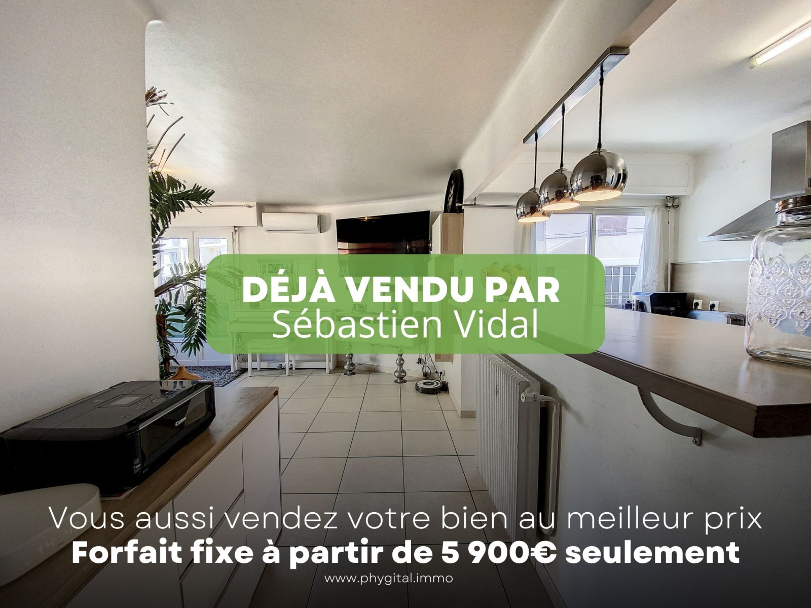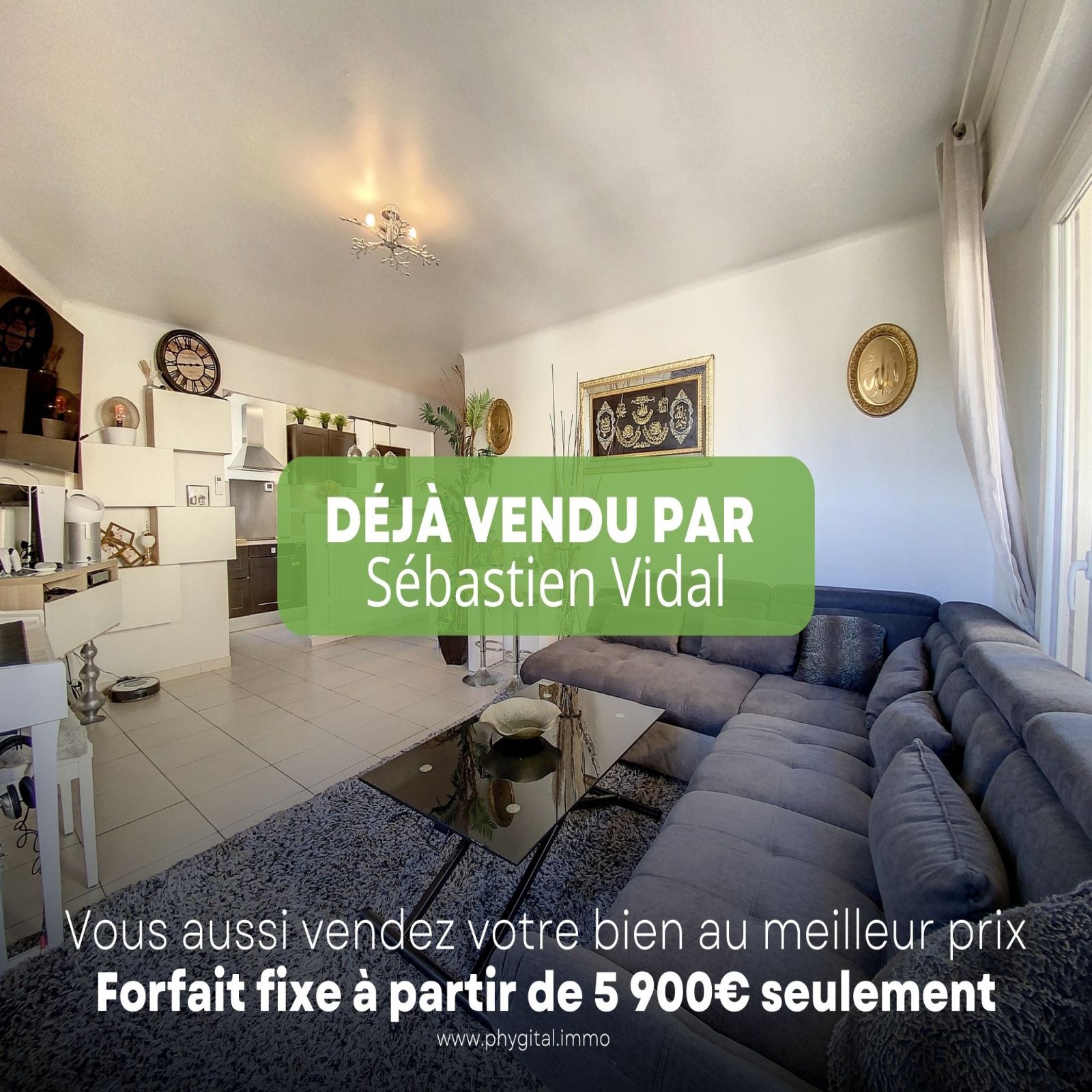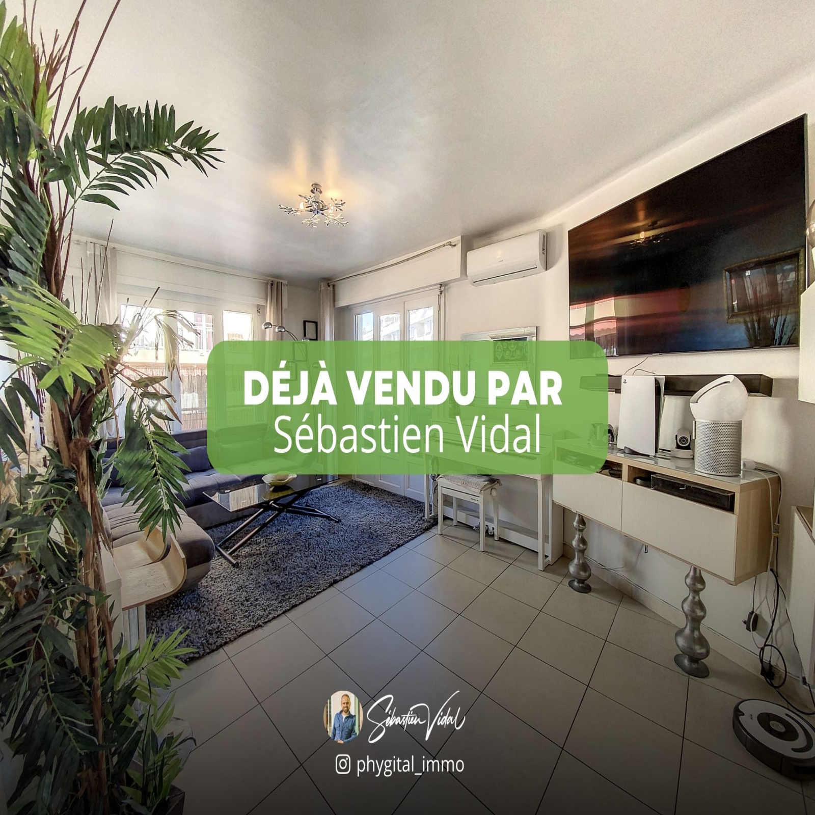 Phygital immo l'agence au forfait fixe vous présente en Exclusivité (Visite virtuelle 360° disponible sur demande) cet agréable 3 pièces de 74.23m² loi Carrez avec un balcon d?angle de 13.07m² exposé Est + un autre balcon devant la chambre. Situé au 5ème étage sur 7 d'une résidence de 1975, il se trouve proche du centre-ville d'Antibes & Juan-les-Pins, des plages, des écoles, des commerces et des transports en commun. Cet appartement de 74.23m² loi Carrez se compose de : - Hall d'entrée : 8,57m² - Séjour : 25,47m² - Cuisine : 7,8m² - Chambre 1 : 14,28m² - Chambre 2 : 10,95m² - Salle de douche : 4,47m² - WC indépendant : 1,29m² - Balcon 1 : 13,07m² - Balcon 2 : 3,14m² - Pas de parking et pas de cave Les plus de l'appartement : - Etage élevé - Balcon d'angle de 13,07m² - Cuisine ouverte et semi-équipée avec plaque de cuisson, hotte et lave-vaisselle - Climatisation réversible dans le séjour - Deux placards de rangement dans le hall d?entrée - Double vitrage dans tout l?appartement - Proximité immédiate du centre-ville, des écoles, des commerces et des plages Travaux récemment effectués dans l'appartement : *Salle de douche avec double vasque *Interphone avec vidéo (écran couleur) - Montant des charges : 223€ /mois incluant l?entretien des parties communes, le chauffage, l'eau froide et l'eau chaude - Montant de la taxe foncière : 849€ Visite virtuelle 360° disponible sur demande. Contactez-nous pour organiser une visite ou une estimation de votre bien immobilier. Ce bien vous est présenté en exclusivité par Phygital immo, l?agence immo au forfait fixe avec des services innovants pour vous permettre de vendre au meilleur prix et dans les plus brefs délais. Régime de la copropriété : Oui. Nombre de lots dans la copropriété : 27 à usage d'habitation. Montant des charges prévisionnelles annuel moyen : 2680€. Procédures diligentées contre la copropriété : Non. 5 000€ TTC Honoraires à la charge de l'acquéreur sur ce bien, inclus dans le prix de vente.
