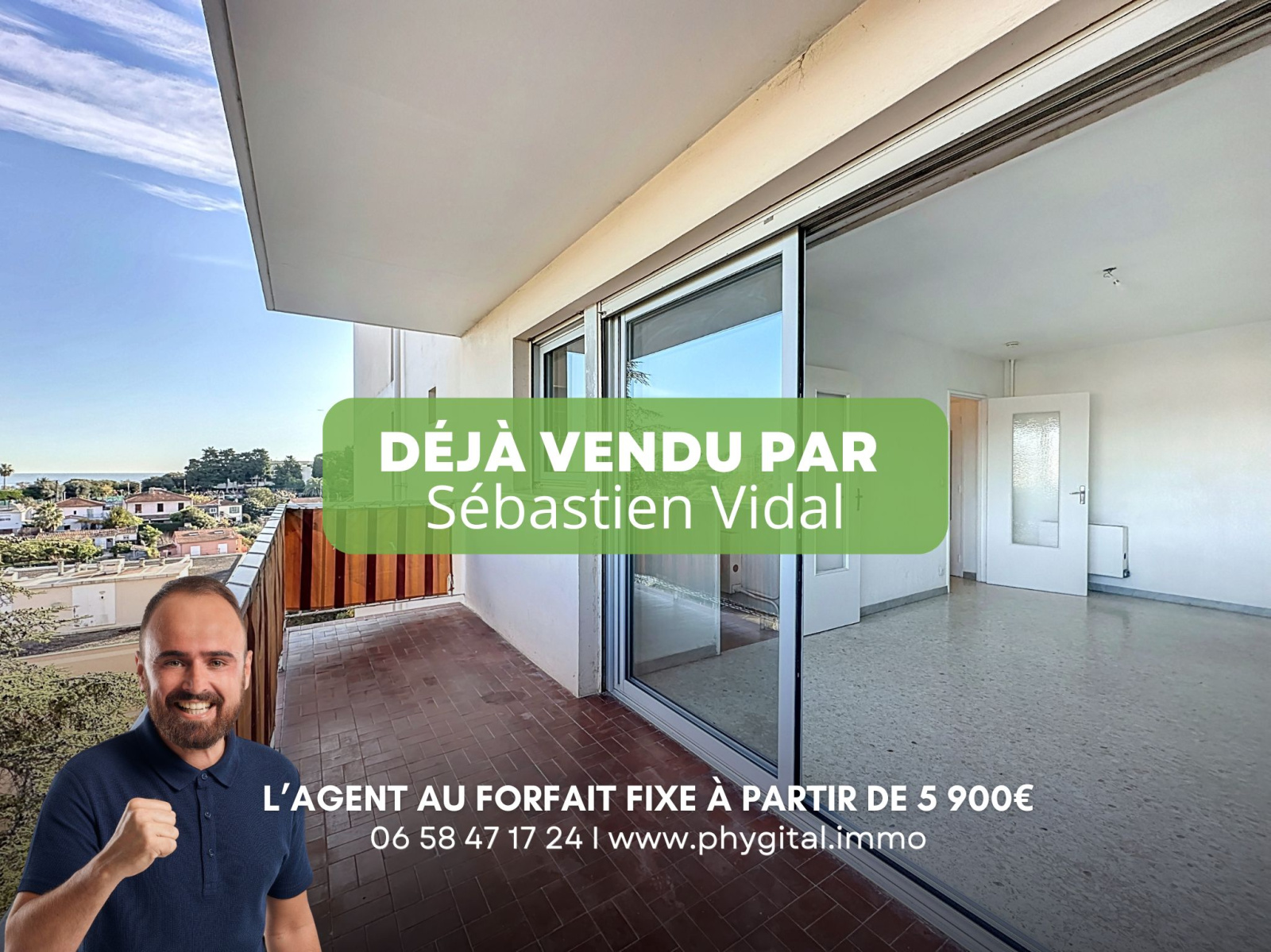 (Visite virtuelle 360° disponible sur demande par sms 7j/7) Sébastien Vidal de chez Phygital immo l'agence au forfait fixe vous présente en Exclusivité cet agréable studio de 24.65m² avec une terrasse de 7.20m² offrant une vue mer et montagnes, sans vis-à-vis. Travaux à prévoir. Situé au 3ème étage sur 7 d'une résidence sécurisée avec gardien, il se trouve dans le quartier recherché des Terres Blanches, proche du bus-tram, des commerces et de l'accès A8. Idéal pour investissement locatif et libre de toute occupation.