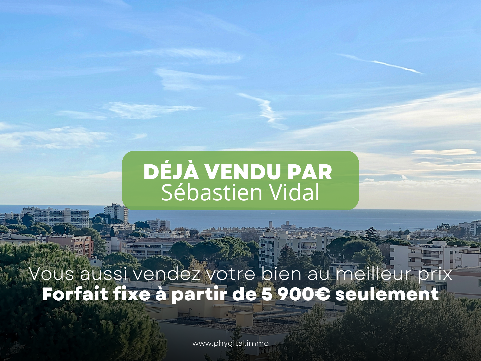 (Visite virtuelle 360° disponible sur demande par sms 7j/7) Sébastien Vidal de Phygital immo l'agence au forfait fixe vous présente en Exclusivité cet agréable appartement 3 pièces de 69.51m² avec une grande terrasse de 10,10m² vue panoramique mer et montagne. Situé au dernier étage sur 5 d'une résidence sécurisée avec piscine, il se trouve à proximité des commerces, des transports en commun, des écoles et des accès à Sophia Antipolis et à l'A8. Parking collectif.