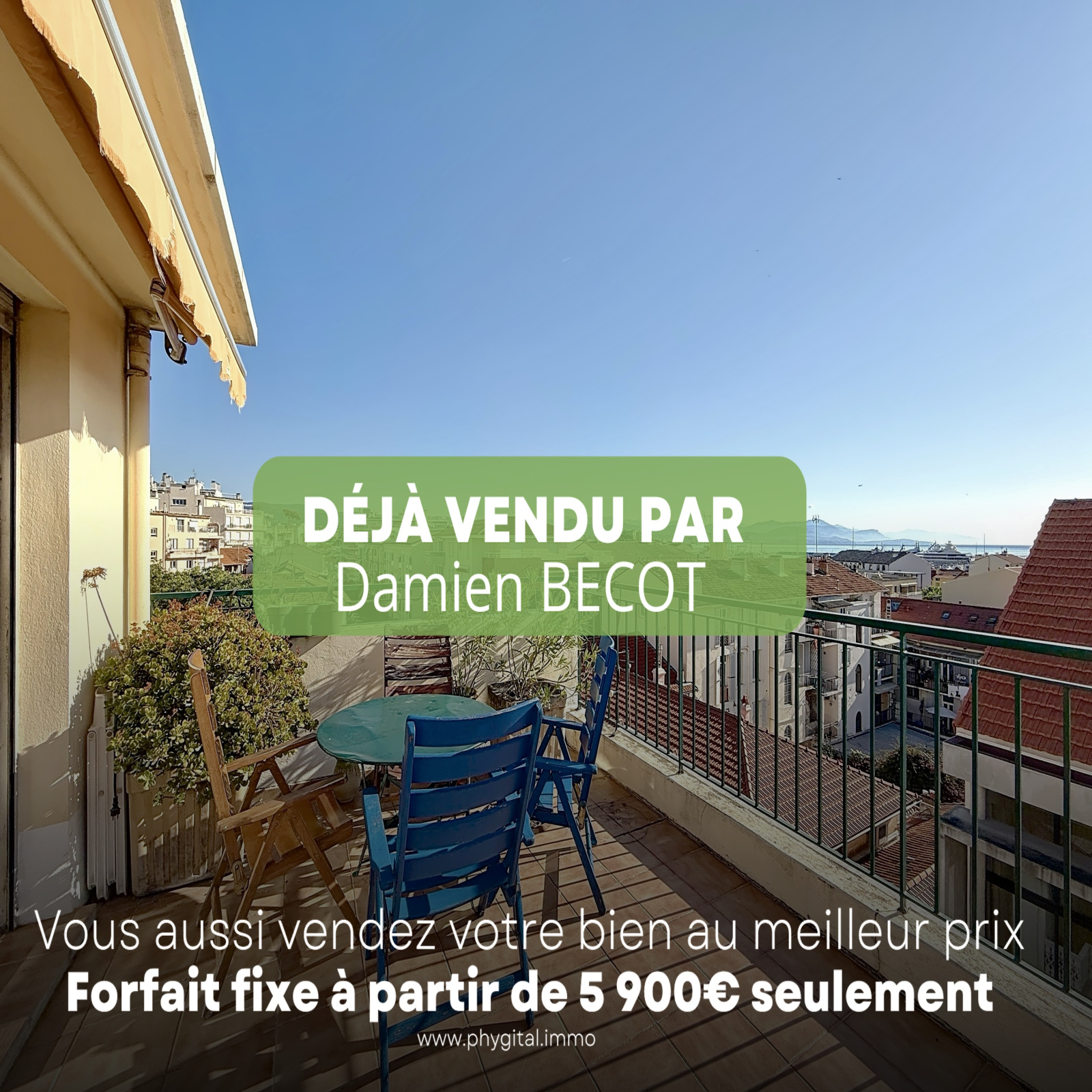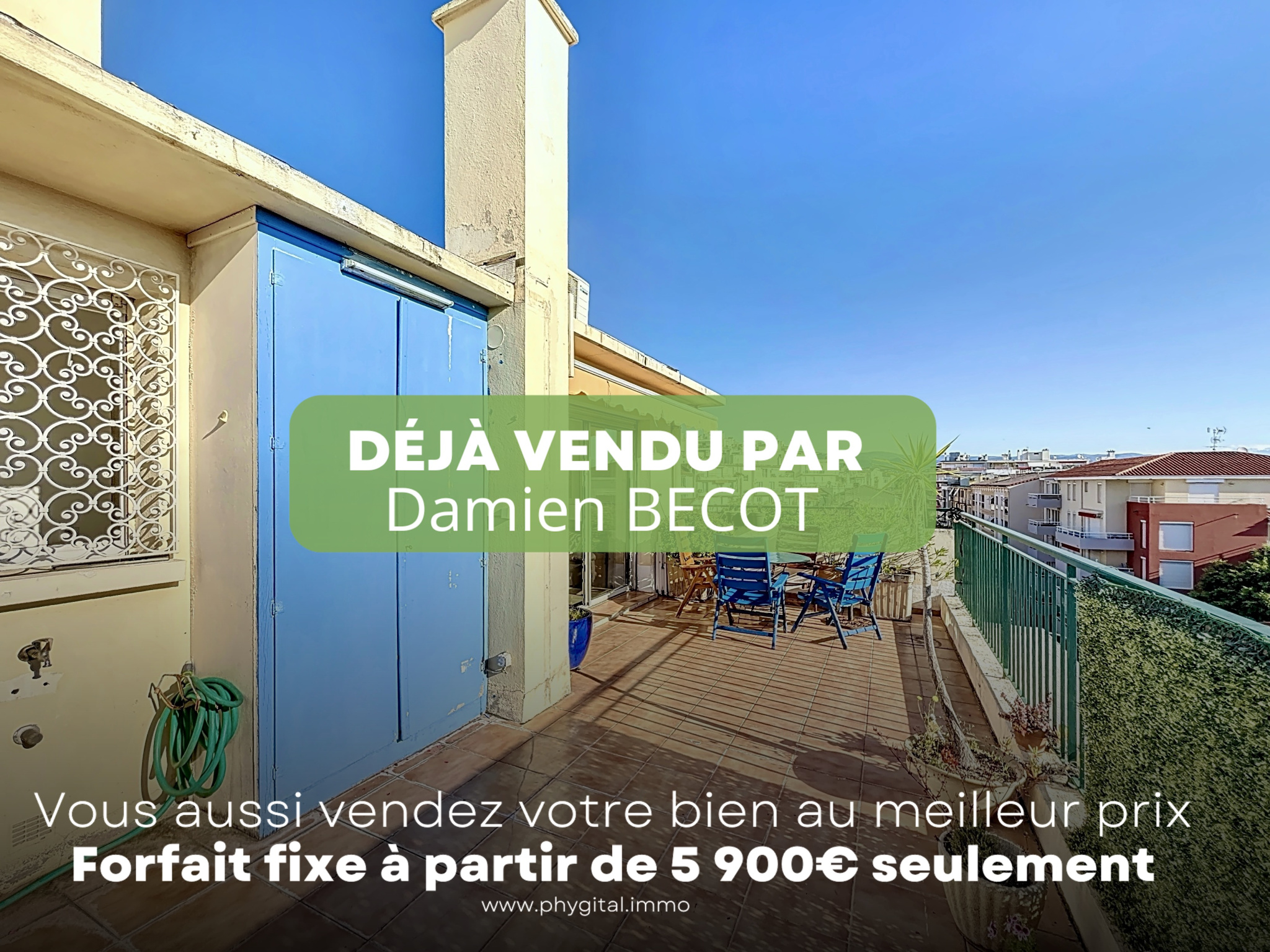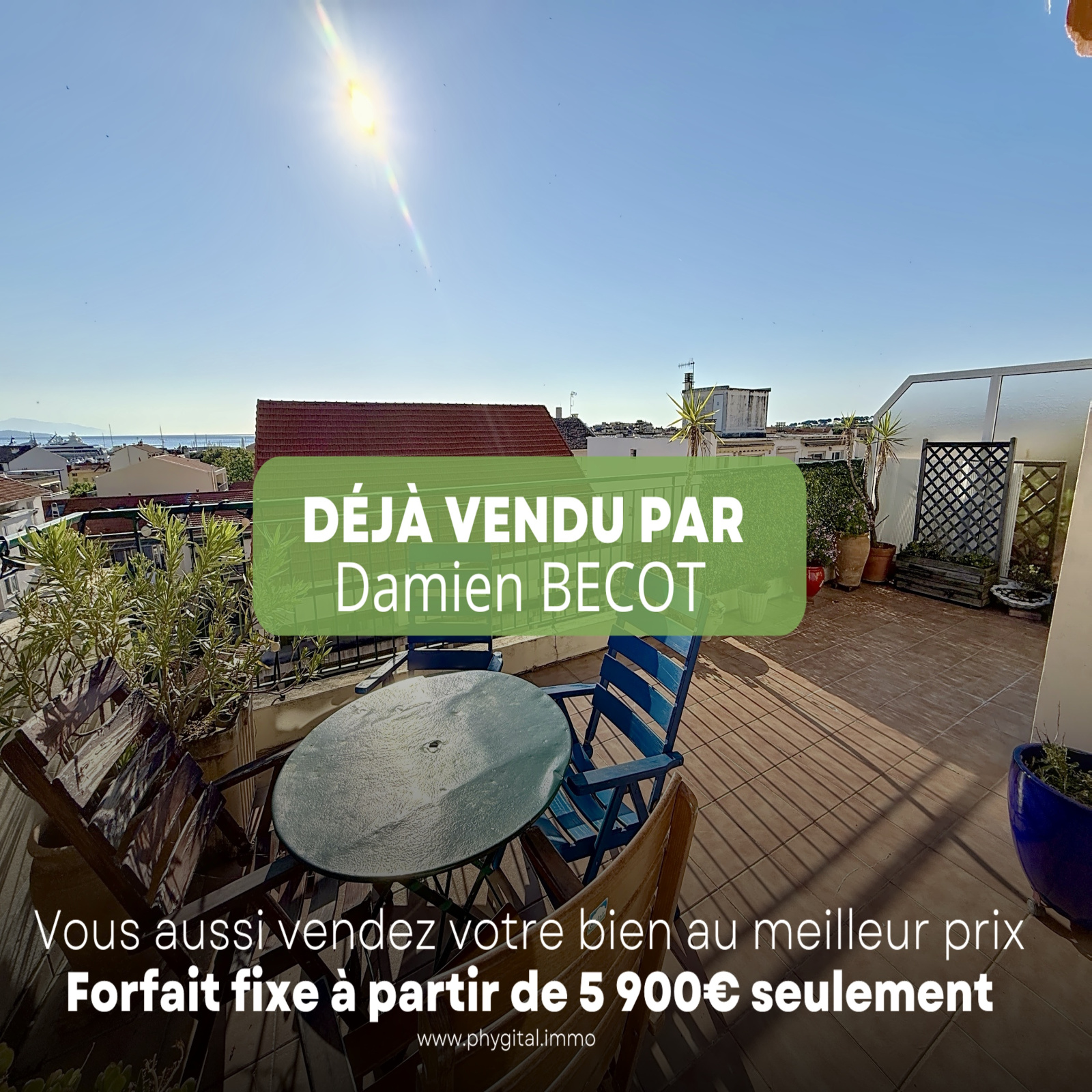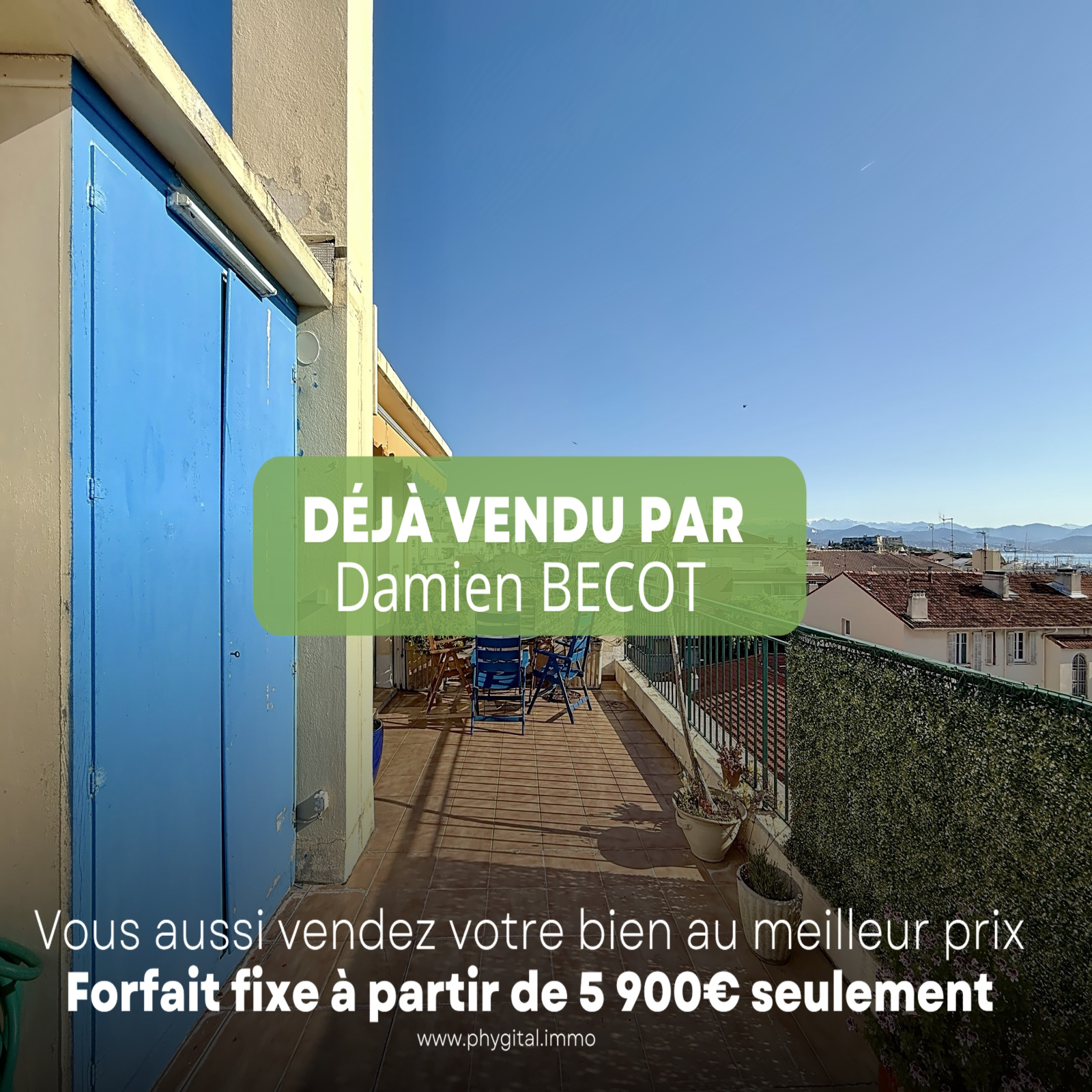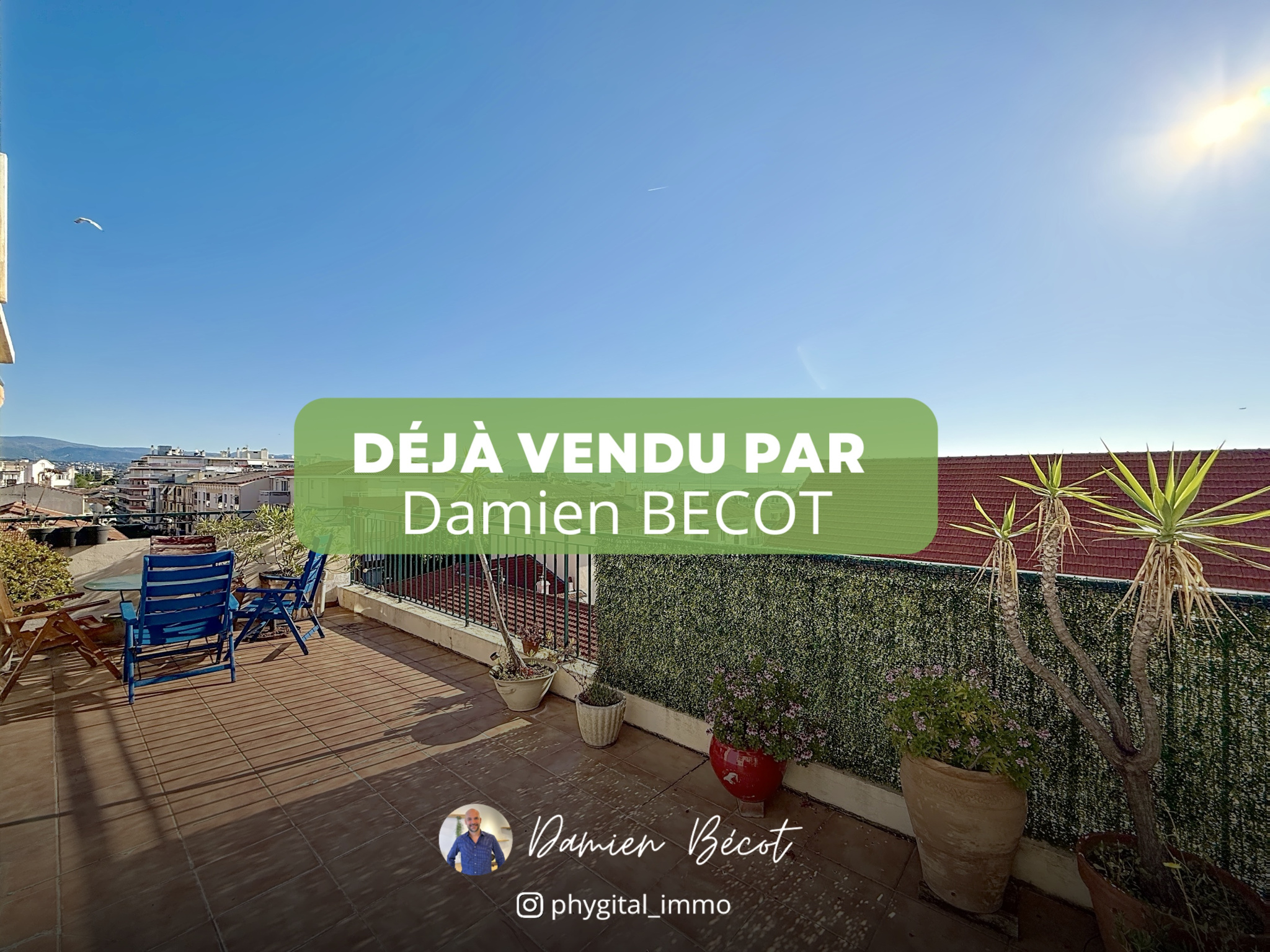(Visite virtuelle 360° disponible sur demande par sms 7j/7) Damien BECOT de Phygital immo l'agence au forfait fixe vous présente en Exclusivité ce superbe appartement 3 pièces de 54,92m² loi Carrez, en dernier étage et traversant, il bénéficie d’une terrasse de 25 m2 en triple exposition offrant une vue panoramique de la chaine du Mercantour au cap d’Antibes. Situé au 5ème étage sur 5 avec ascenseur d'une résidence sécurisée, il se trouve aux portes du Vieil Antibes, du Port Vauban, du centre-ville d’Antibes, des commerces, du bord de mer et des transports en commun. Idéal investisseur ou résidence principale.