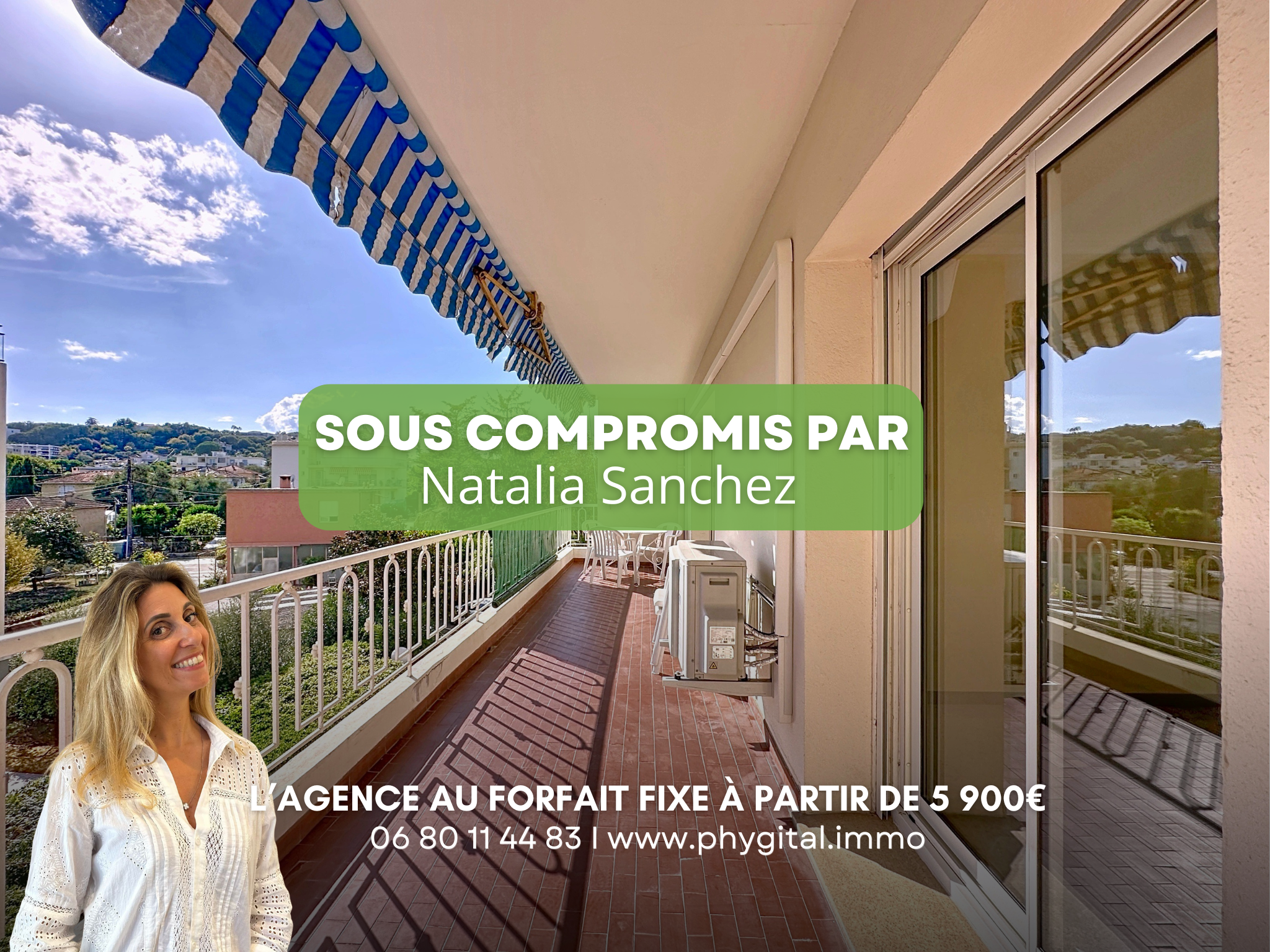 Visite virtuelle 360° disponible sur demande par sms 7j/7) Natalia SANCHEZ de chez Phygital immo l'agence au forfait fixe vous présente en Exclusivité ce vaste appartement 4 pièces de 116,87m² loi Carrez d'angle et traversant, avec deux belles terrasses, dont une offrant un très bel aperçu mer. Exposition Sud pour le séjour. Situé au 2ème étage sur 4 d'une résidence sécurisée, avec ascenseur et très bien entretenue, il se trouve au calme et en retrait de la route dans le quartier des Prugnons, proche du Val Claret, des petits commerces et des transports en commun, et à moins de 5 minutes en voiture du centre-ville d'Antibes. Nombreuses possibilités de réaménagement et très beau potentiel.
