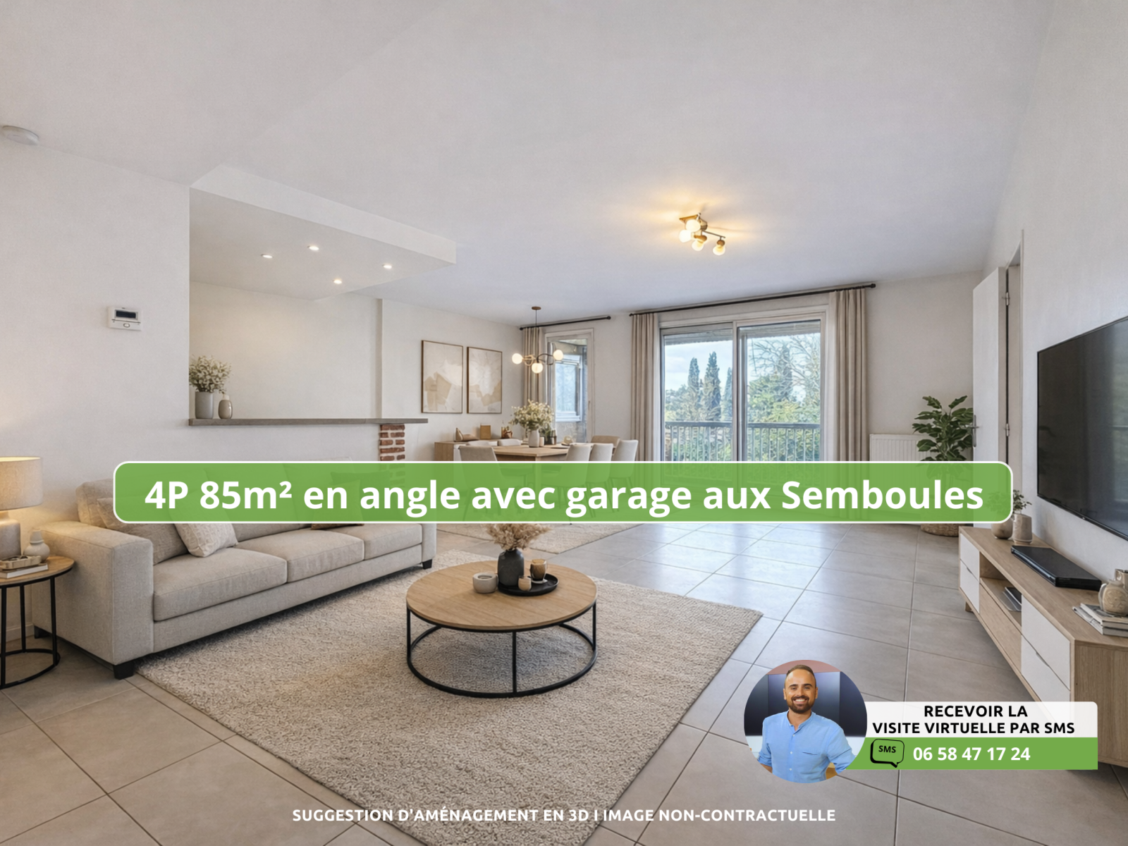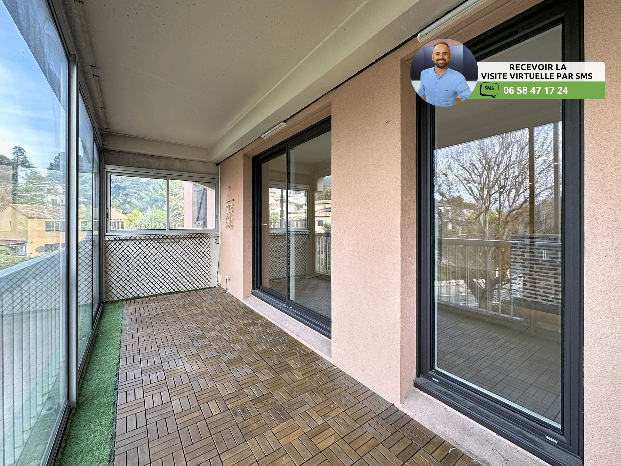 (Visite virtuelle 360° disponible sur demande par sms 7j/7) Sébastien Vidal de chez Phygital immo l'agence au forfait fixe vous présente en Exclusivité ce bel appartement 4 pièces de 85.10m² loi Carrez d’angle, avec une vaste loggia de 10.13m². Situé en avant-dernier étage (3/4) d’une résidence avec gardien, il se trouve dans le quartier recherché des Semboules, à proximité à pied des petits commerces et des transports en commun. Accès à l’A8 et à Sophia Antipolis en 5 minutes. DPE C