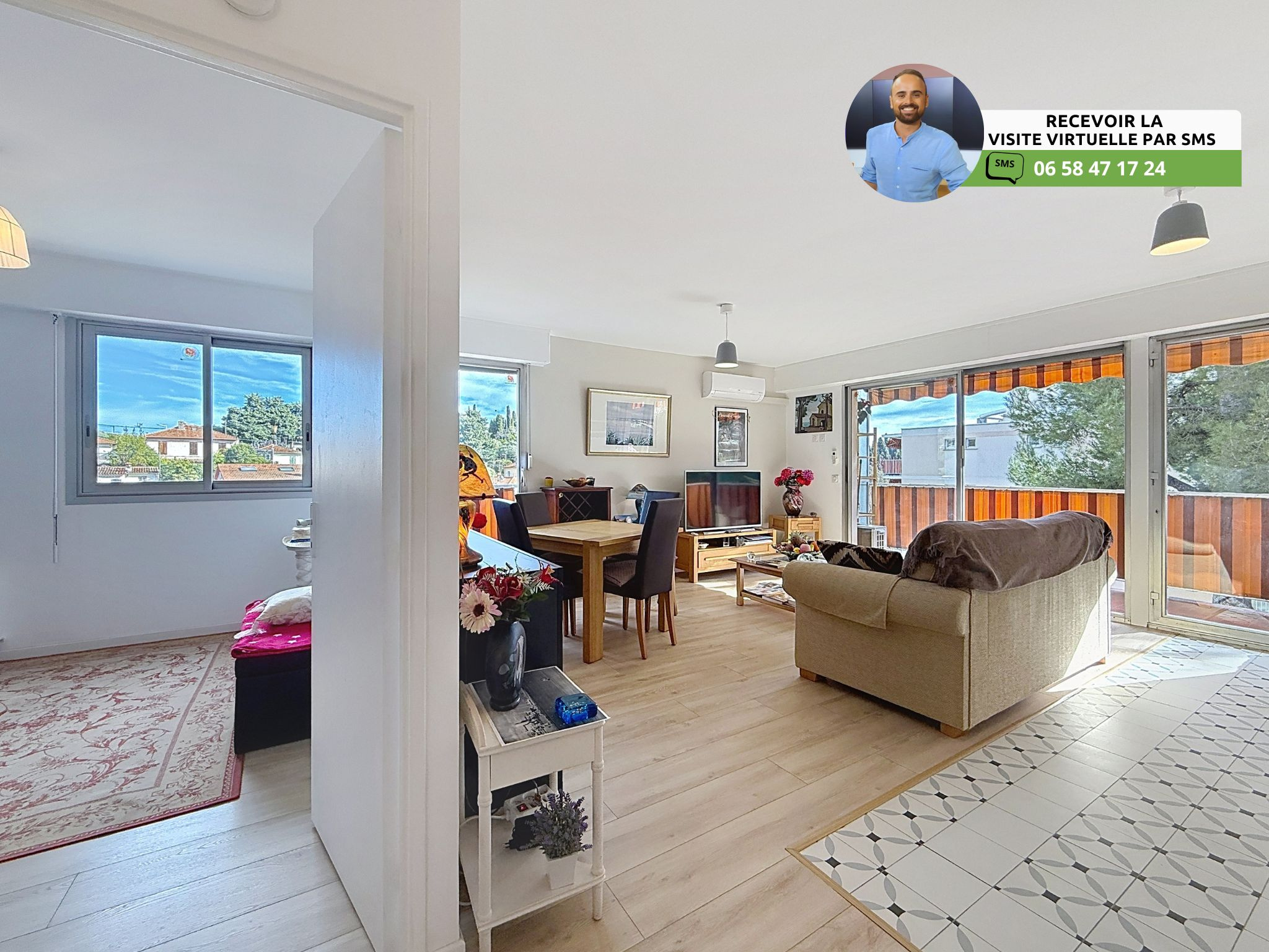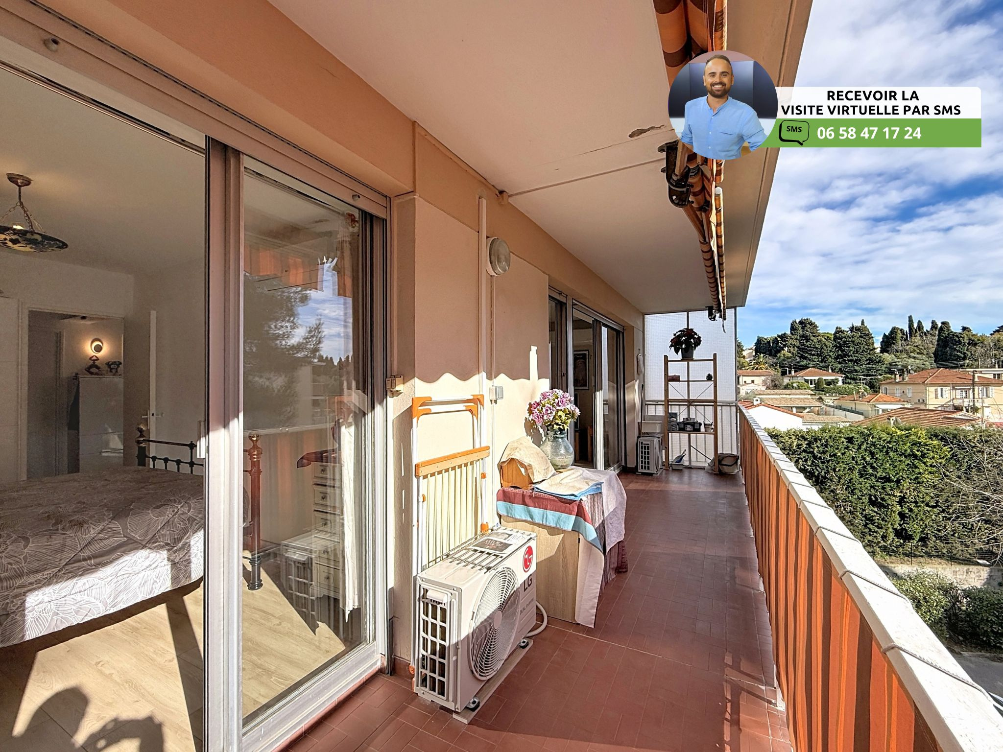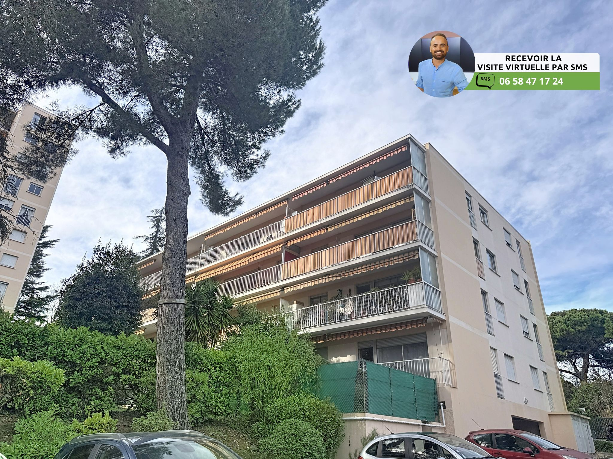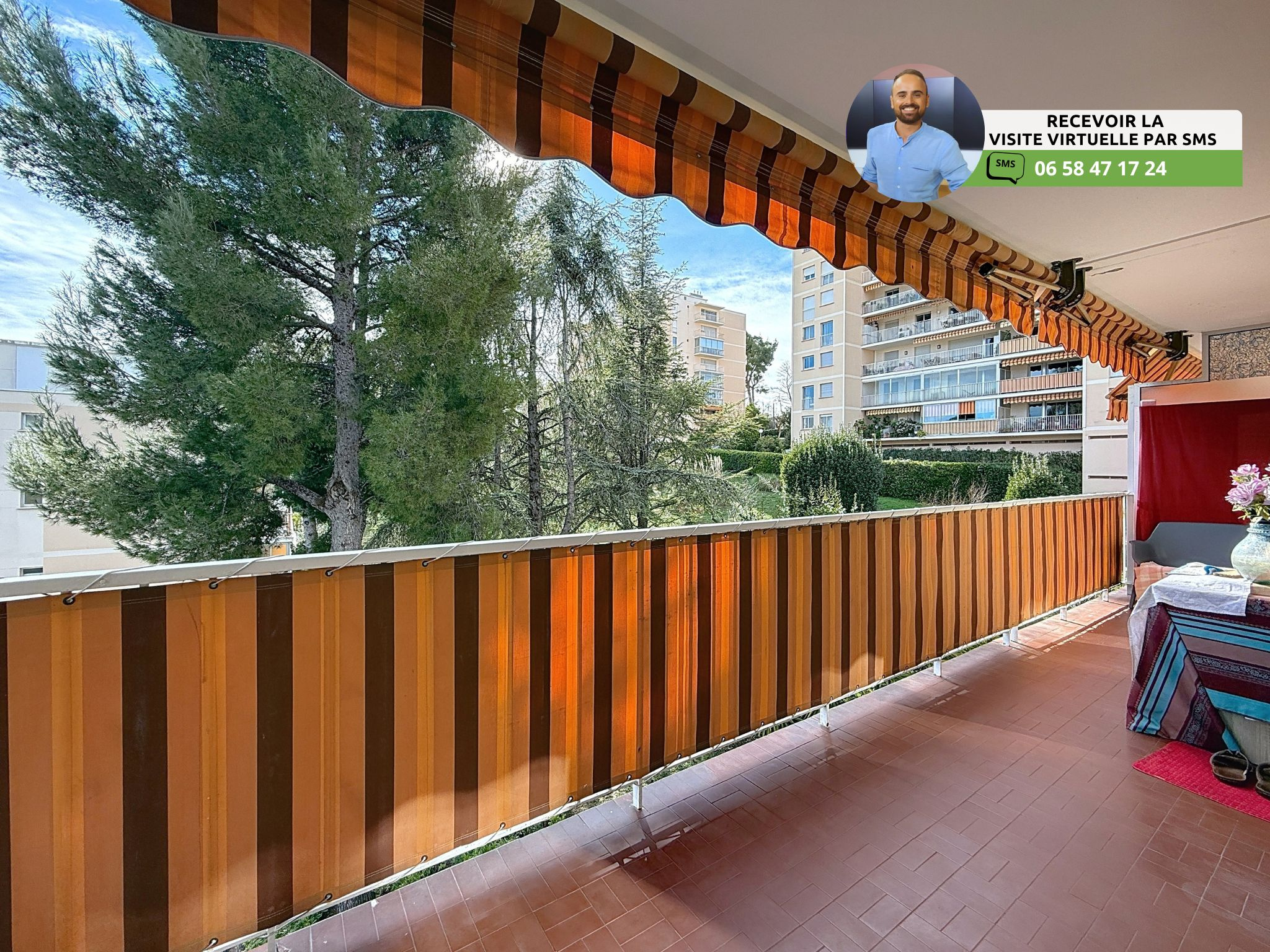 (Visite virtuelle 360° disponible sur demande par sms 7j/7) Sébastien Vidal de chez Phygital immo l'agence au forfait fixe vous présente en Exclusivité cet agréable appartement 3 pièces de 59.12m² loi Carrez d’angle, avec une belle terrasse de 11.25m² exposée Sud. Vue sur le parc de la résidence. Situé en avant-dernier étage (2/3) d'une résidence sécurisée avec gardien et espaces verts, il se trouve dans le quartier recherché des Terres Blanches, à moins de 5 minutes à pied du bus-tram, d'un supermarché Carrefour Market et des petits commerces de proximité. Accès A8 à 5 minutes. DPE C.