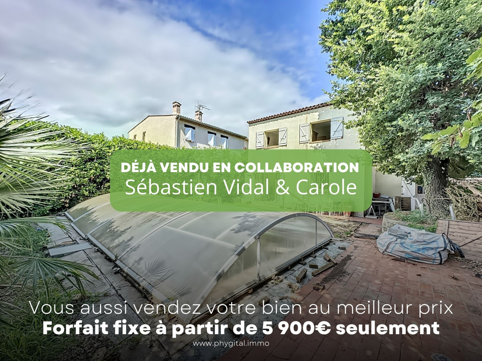 (Fiche technique disponible sur demande par sms 7j/7) Phygital immo l'agence au forfait fixe vous présente en Exclusivité cette maison individuelle 8P de 200m². Située dans un environnement arborée et calme. Exposée Sud-Ouest avec un jardin de 420m2 et un terrain de 620m². Le jardin est arboré d?oliviers, de chênes et citronnier et une piscine 4x9. Actuellement configurer en deux appartements, on peut tout à fait relier les deux par un escalier central (déjà réalisé auparavant). Gros travaux à prévoir. Convient pour une résidence principale ou un projet famille. Beau potentiel. Situé dans un quartier résidentiel, à 3 minutes à pied d?une école maternelle, à 4 minutes à pied de l?arrêt de bus, à 13 minutes en voiture de l?autoroute. Possibilité de stationner deux véhicules dont une sous le carport. Sur le terrain se trouve également un cabanon, le local technique de la piscine et le local technique de la pompe à chaleur. Cette maison de 200m² environ se compose : Au rez-de-jardin (100m² environ) : - Séjour - Cuisine - Chambre 1 - Chambre 2 avec placard - Dégagement - Salle de bain - Wc indépendant - Chambre 3 - Chambre 4 - Salle de douche - Wc indépendant A l?étage (100m² environ) : - Hall d?entrée - Séjour (avec terrasse) - Cuisine - Dégagement - Chambre 1 - Chambre 2 - Salle de bain - Wc indépendant - Cabanon - Piscine 4x9 - Local technique - Carport en bois pour une voiture + possibilité de garer un 2ème véhicule - Terrasse/Jardin Les plus de la maison : - Calme - Pas de vis à vis - Une terrasse à l?étage et un jardin de 420m² environ - Exposition Sud-Ouest - Cuisine à l?étage équipée avec plaque vitro-céramique, lave-vaisselle, micro-onde, four encastré et réfrigérateur/congélateur - Cuisine au rez-de-jardin équipée avec plaque de cuisson au gaz, four, machine à laver et réfrigérateur/congélateur - Salle de bain à l?étage avec baignoire et double vasque - Salle de bain au rez-de-jardin avec baignoire et double vasque et wc indépendant - Salle de douche au rez-de-jardin avec douche - Fenêtres en simple vitrage - Volets en bois battants manuels - Cheminée dans le séjour à l?étage - Cabanon - Tout à l?égoût - Pas de vide sanitaire - Pompe à chaleur récente (moins de 2 ans) - Radiateur - Carport - Mezzanine de management au-dessus du carport - Piscine 4x9 - Raccordement de la Fibre dans le quartier - Montant de la taxe foncière : 850€ Fiche technique disponible sur demande. Contactez-nous pour organiser une visite ou une estimation de votre bien immobilier. Ce bien vous est présenté en exclusivité par Phygital immo, l?agence immo au forfait fixe avec des services innovants pour vous permettre de vendre au meilleur prix et dans les plus brefs délais. Classe énergie : DPE D (155) - GES D (33) Estimation des dépenses annuelles d'énergie pour un usage standard : 1990€ - 2730€ (année de référence : 2021) 9 900€ TTC Honoraires à la charge de l'acquéreur sur ce bien, inclus dans le prix de vente (Soit 1,83% du prix de vente) Les informations sur les risques auxquels ce bien est exposé sont disponibles sur le site Géorisques : www.georisques.gouv.fr