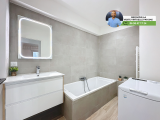 - Salle d'eau avec une baignoire et emplacement pour la machine à laver